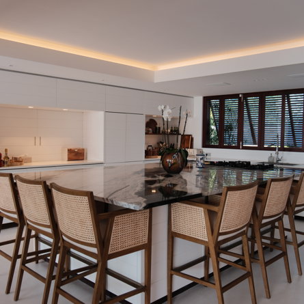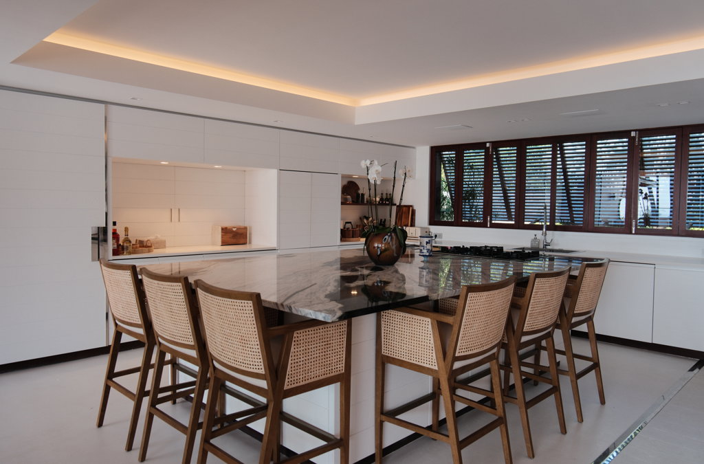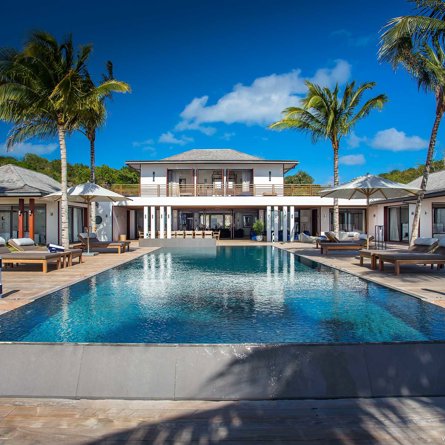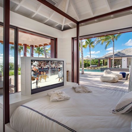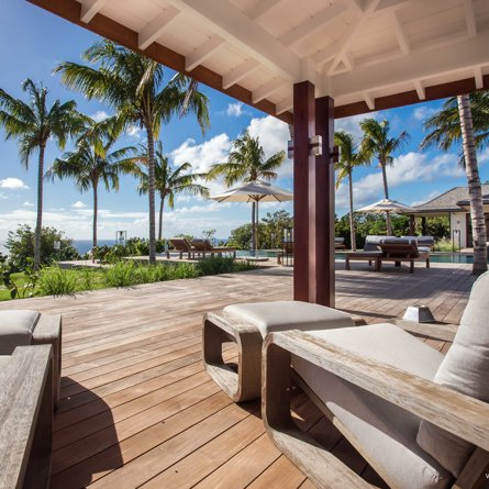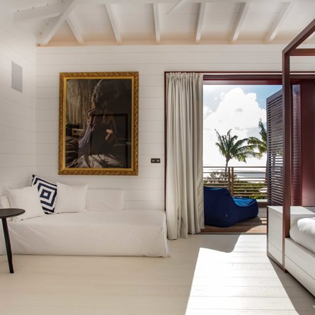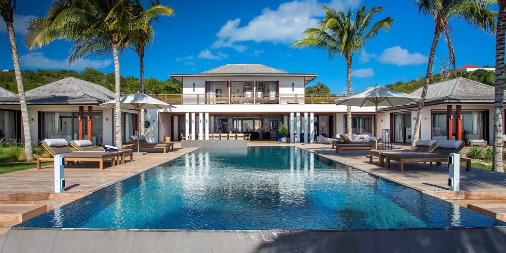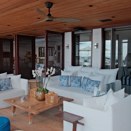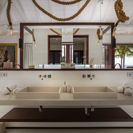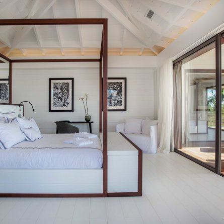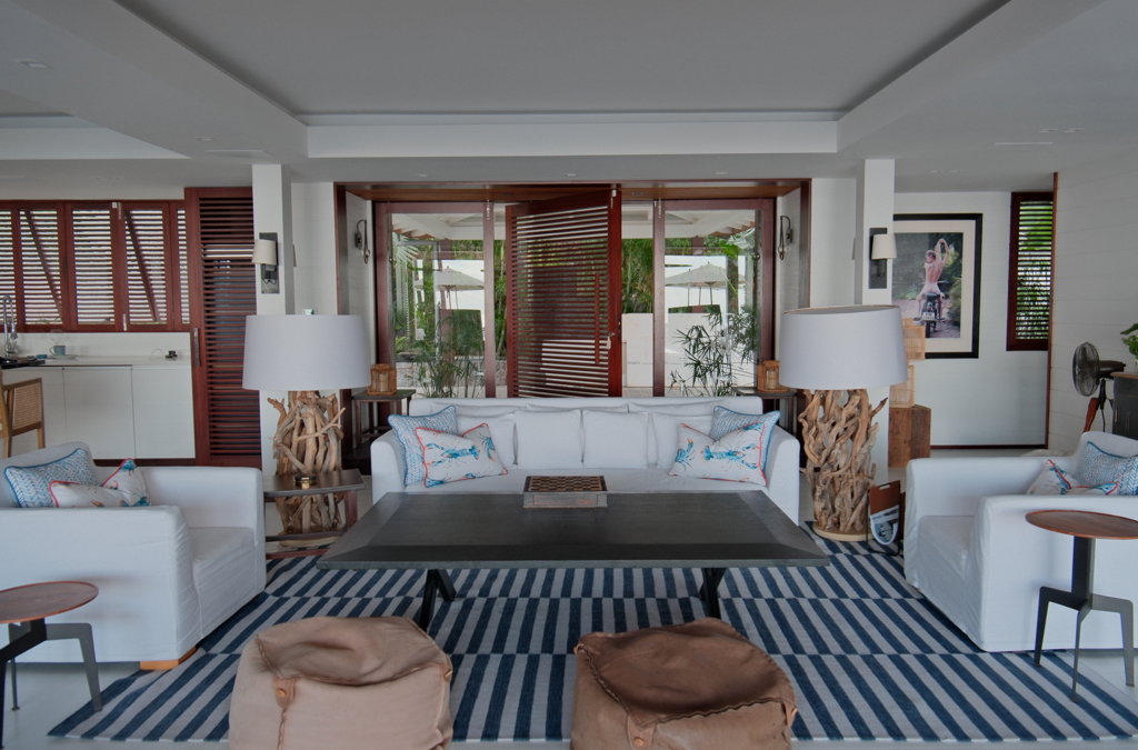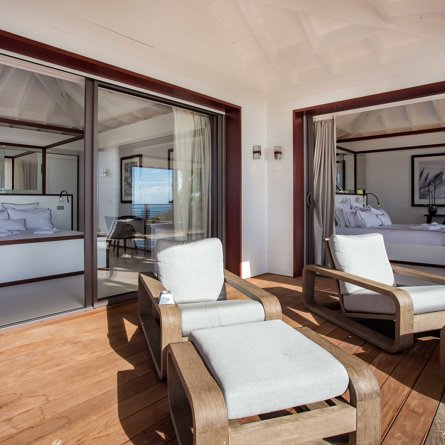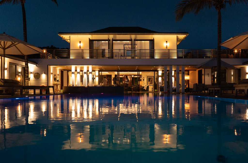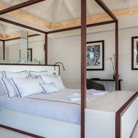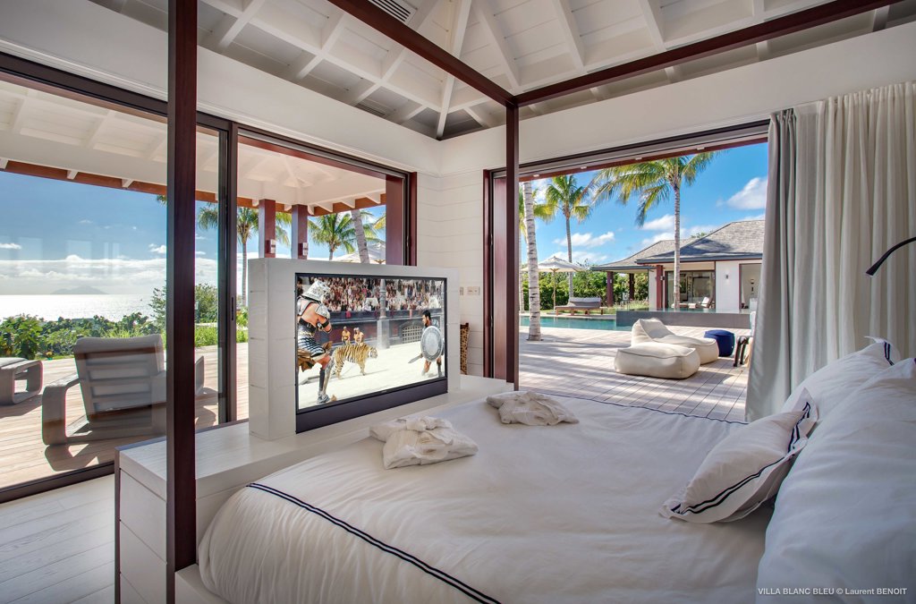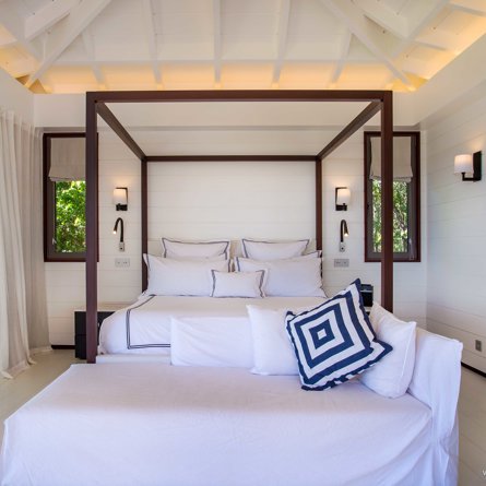 Dans la villa Blanc Bleu, le calme règne mais ce n’est pas sa seule qualité : un immense jardin accompagné d’un court de tennis padel, une décoration intérieure inspirée du style Hampton, des couleurs empruntées au bleu de la mer et au blanc du sable, une vue sur l’océan à perte de vue assurant une totale intimité ou encore le soleil jusqu’en fin de journée illuminant toute la propriété.