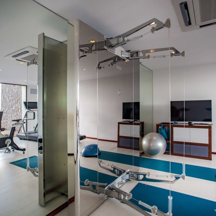 Air conditionné, TV, Tapis de course, Vélo d'intérieur, Poids, Tapis de Yoga.