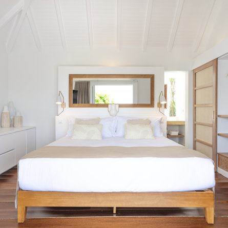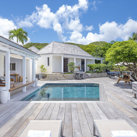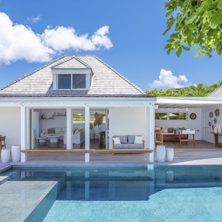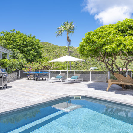 Proche des activités et de l’aéroport, la villa Gaillac avec vue sur Anse des Cayes est dotée de nombreux atouts : de larges espaces s’ouvrant sur l’extérieur et sa piscine, la chambre principale située en contrebas et une décoration intérieure à l’esthétique minimaliste qui séduira les grandes tribus.