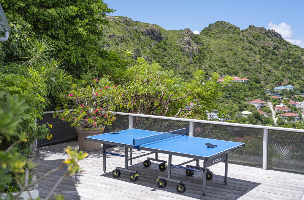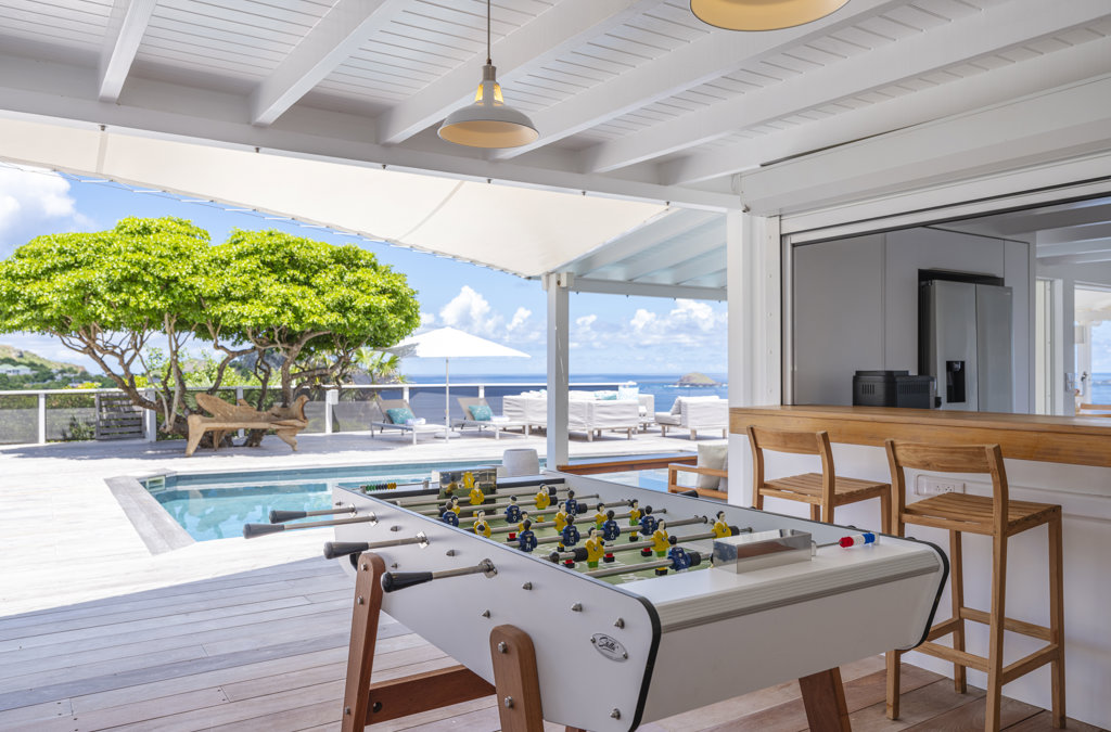 Vue mer, Terrasse, Table à manger, Piscine chauffée, Bains de soleil, Parasols, Salon de jardin, Système de son, Table de ping-pong, Babyfoot, Barbecue.
