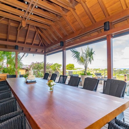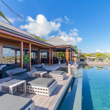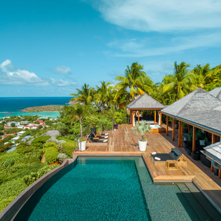 Une demeure à la sublime décoration d’inspiration asiatique dont chaque meuble a été fabriqué à St Barth selon une technique ancestrale, mais bien plus encore : la villa Jade est parfaitement adaptée pour recevoir des familles multigénérationnelles, une cuisine de Chef équipée d’une chambre froide, une salle de sport aux nombreuses machines, un vaste salon, une salle de projection et enfin une très belle terrasse avec une piscine à débordement et un jacuzzi donnant sur la baie de Marigot.