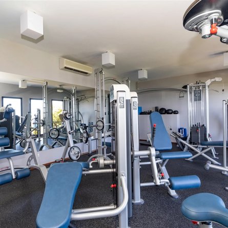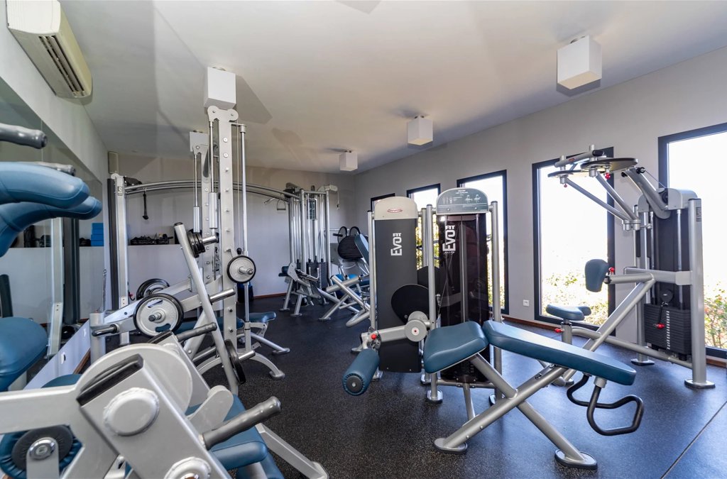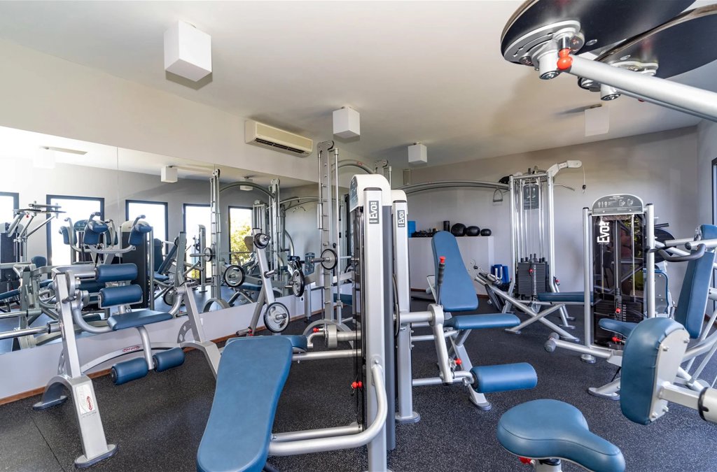 Air conditionné, Tapis de course, Vélo d'intérieur, Banc de musculation, Altères, Poids.