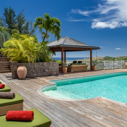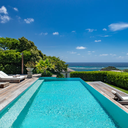 Située à Mont Jean, la villa Palmier Royal est notre propriété qui offre le plus de chambres mais aussi des prestations d’exception pour les grandes tribus ou les groupes d’amis : deux villas abritant onze chambres et la troisième réunissant les pièces à vivre, deux piscines chauffées et un jacuzzi, de multiples terrasses ensoleillées et ombragées, une cuisine de Chef, des intérieurs vastes et modernes au confort luxueux où vous aimerez créer de merveilleux souvenirs dans ce lieu paradisiaque.